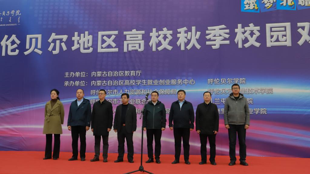 招聘双选会中,呼伦贝尔市人力资源和社会保障局副局长王治家,呼伦贝尔市就业服务中心主任张磊,满洲里俄语职业学院党委委员、副院长孙德忠,海拉尔区人力资源和社会保障局长丁永,海拉尔区就业服务和人事考试中心主任黄燕及兄弟院校有关领导出席,呼伦贝尔学院党委委员、副校长尹立军参加会议并发表讲话,会议由招生就业处处长赵小花主持。