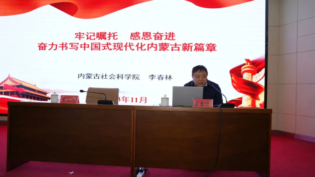 本次读书班邀请内蒙古社会科学院原院长、二级教授李春林研究员作《牢记嘱托 感恩奋进 奋力书写中国式现代化内蒙古新篇章》专题辅导报告。