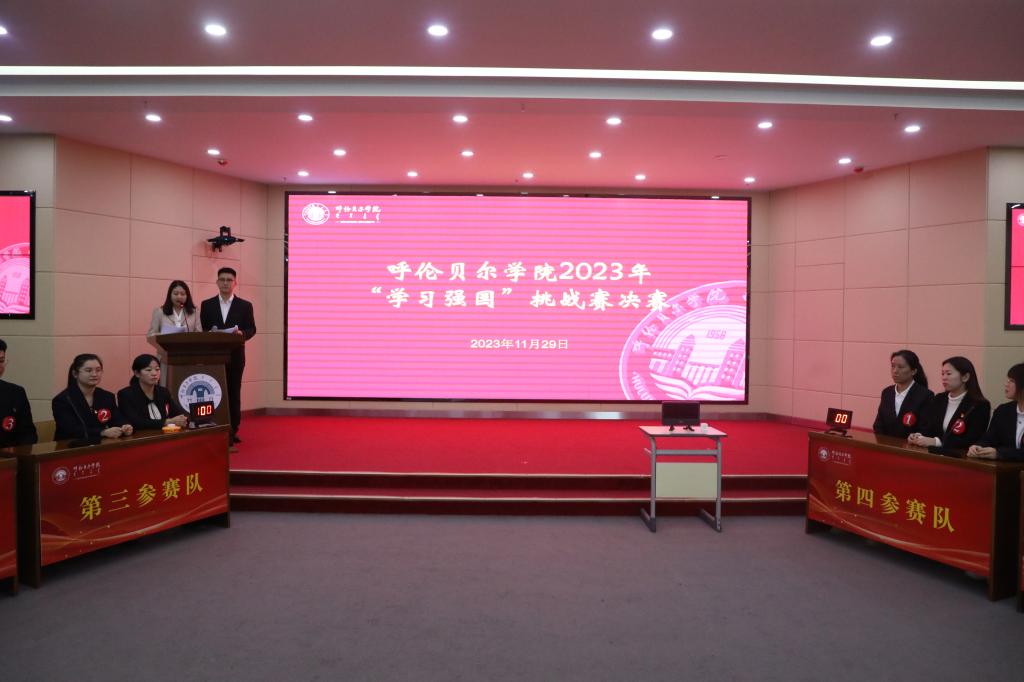 为进一步推动理论学习走深走实,不断扩大“学习强国”学习平台的覆盖面和参与度,激发学习热情,11月29日下午,在崇文楼A座201会议室,永利yl23411集团官网举行“以赛促学强思想·以学促干求实效”—“学习强国”挑战赛决赛。校党委副书记张宏天,“学习强国”呼伦贝尔市学用管理专班负责人、市委宣传部理论科科长孔令强,“学习强国”呼伦贝尔市学用管理专班学用推广工作负责人肖洋,各学院、部门领导及参赛选手120余人观看了比赛。