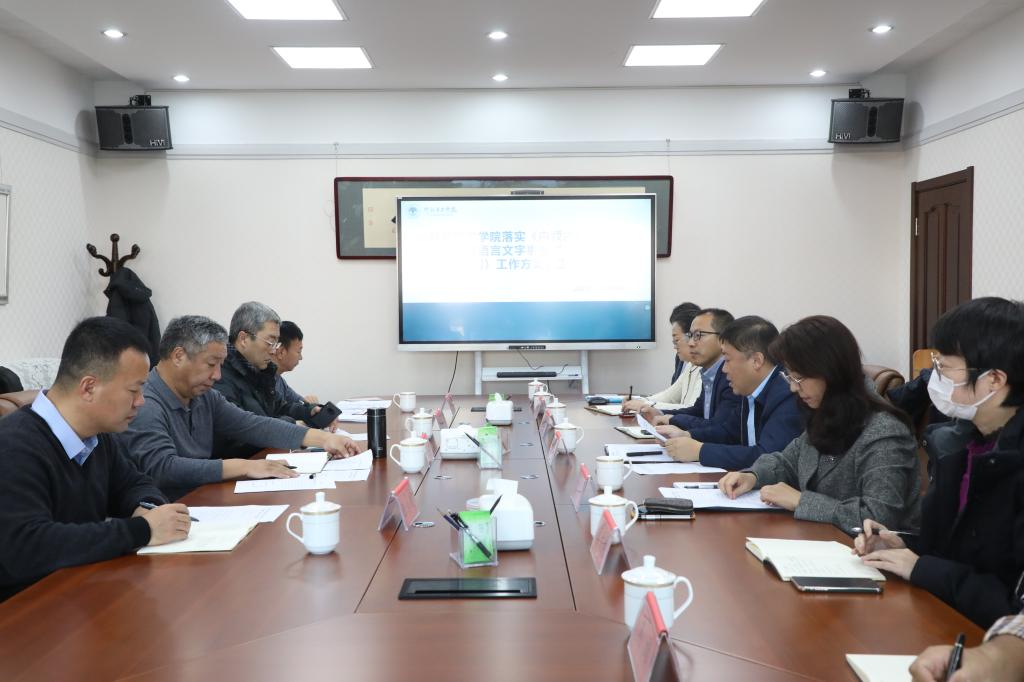 尹立军代表学校对检查组专家的到来表示欢迎。他表示,呼伦贝尔学院一直高度重视语言文字工作,学校语委、行政结合学校办学定位和学科专业优势,探索高校语言文字工作的新途径和新方法,在工作中取得了一定的成绩。希望通过本次中期检查,检查组专家对永利yl23411集团官网语言文字工作给予帮助与指导,助力学校长远发展。