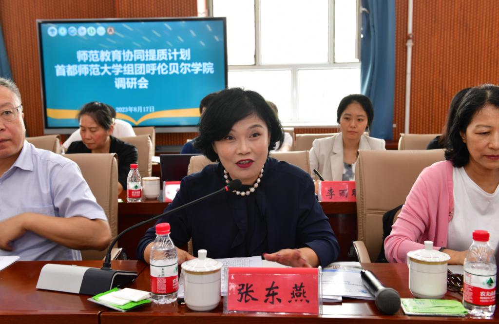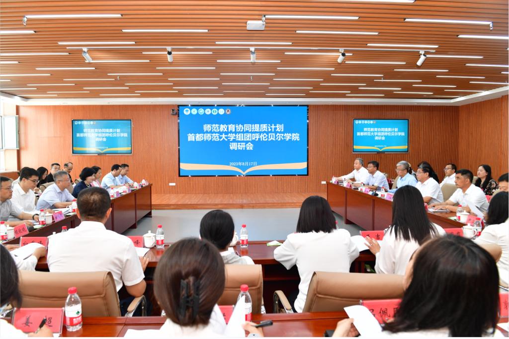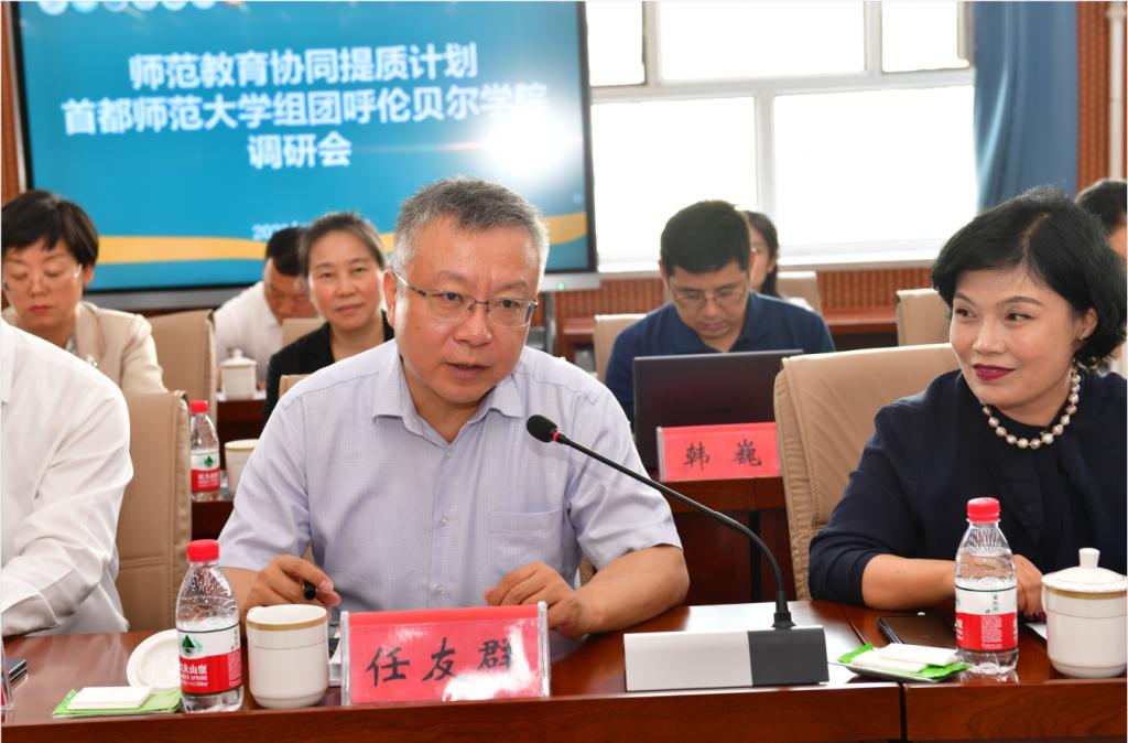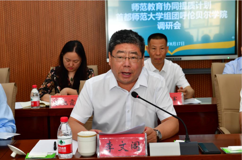 随后,在崇文楼A座501会议室,召开了师范教育协同提质计划首都师范大学组团呼伦贝尔学院调研会。校党委副书记、校长李文阁,校党委委员、副校长敖特根、李跃武、尹立军,以及学校相关职能部门负责人、师范专业学院院长参加调研会,调研会由尹立军副校长主持。会前,集体观看了《踔厉奋发新时代的呼伦贝尔学院》宣传片。