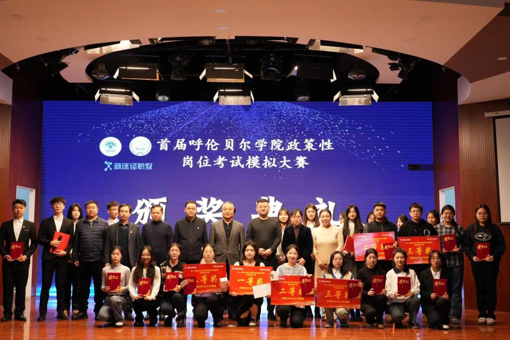 12月15日,由招生就业处主办的首届呼伦贝尔学院政策性岗位招聘考试模拟大赛颁奖典礼在崇文楼B座小剧场举行。校党委委员、副校长李跃武,新途径教育呼伦贝尔分校校长田蕾,招生就业处处长赵小花,文学院党总支书记核心,工学院党总支书记王旭,音乐与舞蹈学院党总支书记包德,旅游地理与历史文化学院党总支副书记王宏霞及相关学院师生代表参加了此次颁奖典礼。