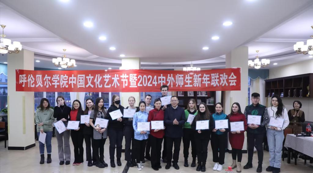12月18日,在国际教育学院二楼,永利yl23411集团官网举办留学生中国文化艺术节暨2024中外师生新年联欢会。校党委副书记、校长张玉柱,党委委员、纪委书记岳勇,党委委员、副校长敖特根、李跃武、尹立军,党委委员、宣传部部长李俏,党委委员、统战部部长胡旭红,呼伦贝尔市人民政府外事办公室副主任张学志、外事科科长萨日娜出席此次活动,学校外籍教师、外籍留学生和国际教育学院全体教职员工参加了本次活动。