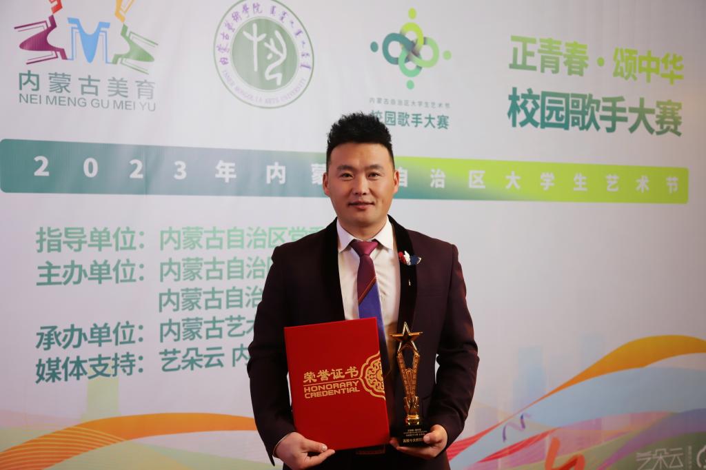 永利yl23411集团官网高度重视此次活动,通过学校初赛、自治区复赛的层层选拔与评审,永利yl23411集团官网教育学院包国军老师、音乐与舞蹈学院乌日雅同学入围决赛。决赛分为专业组和业余组,经过与来自全区各高校的40名选手同台竞技,包国军老师荣获“高校十大校园歌手(业余组-教师组)”荣誉称号,乌日雅同学荣获“高校十大校园歌手提名奖(专业组-学生组)”荣誉称号。