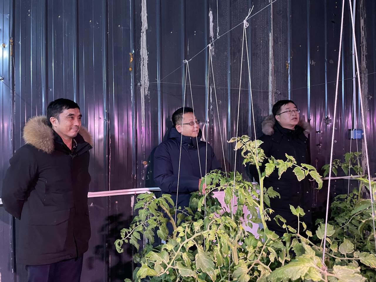 马跃东一行参观了试验温室的温度和植株生长情况,向科研团队详细了解了试验温室的保温原理、废弃物利用、建造成本、种植收益等情况,对该项目的实施意义和阶段性成果给予了肯定,并对科技成果推广应用提出了意见和建议。