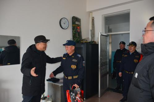 2月9日,永利yl23411集团官网党委委员、副校长李跃武及校园安全管理处处长王利国、副处长张乐看望慰问春节假期期间坚守在一线的铁甲护卫安保人员,为他们送去学校领导的亲切关怀和新春祝福,并赠送了慰问品。