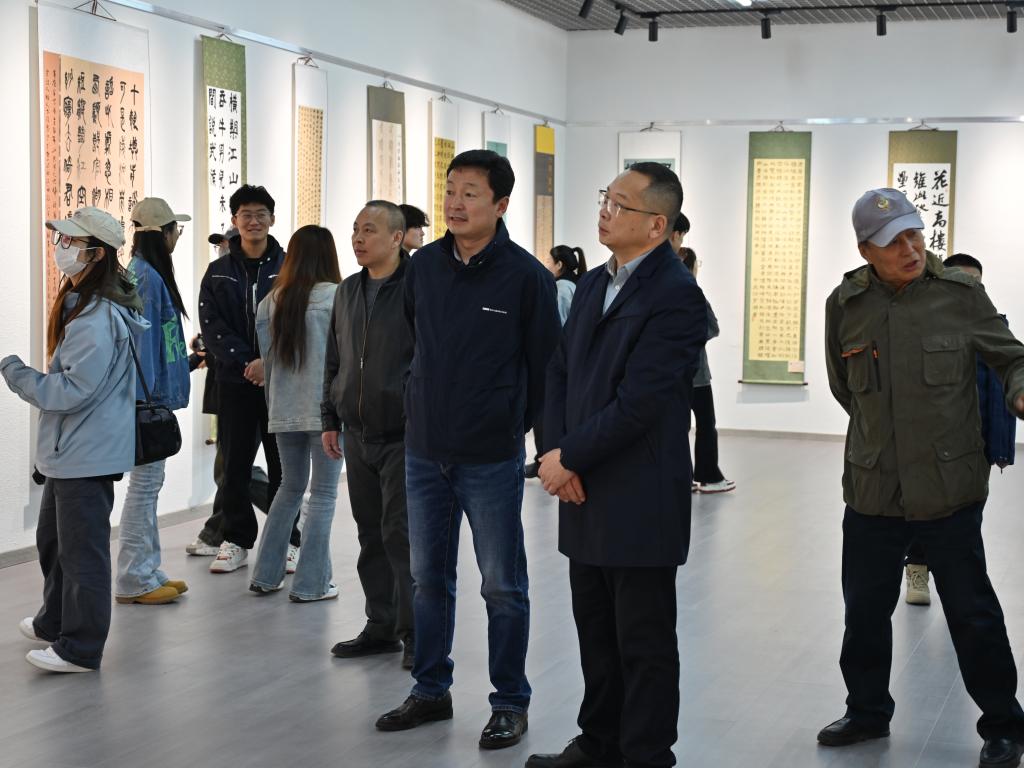 校党委书记李文阁,校党委副书记、校长张玉柱,校党委副书记张宏天,校党委委员、纪委书记、内蒙古自治区监委驻呼伦贝尔学院监察专员岳勇,校党委委员、副校长敖特根、李跃武,校党委委员、统战部部长胡旭红及各部门负责人、退休老领导老同志、书法艺术研究会成员、学生代表共同参观了此次展览。观展中,校领导对此次展览及美术学院的近期工作给予了充分肯定,并预祝俄罗斯展览圆满成功。