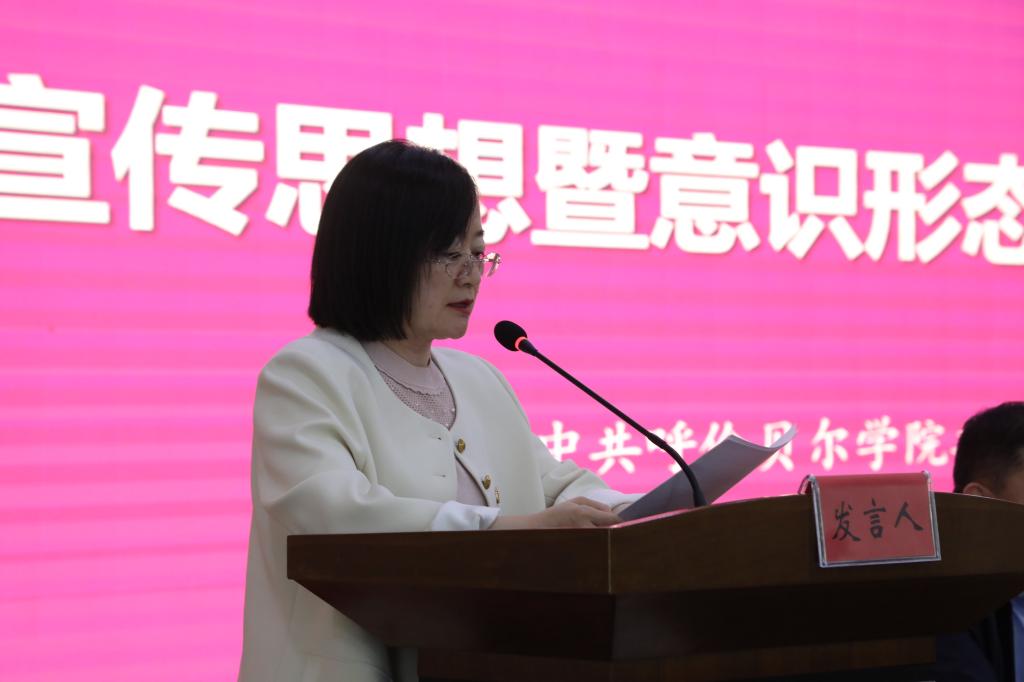 党委宣传部副部长白玫对学校2023年宣传思想及意识形态工作进行总结,并安排部署2024年重点工作。