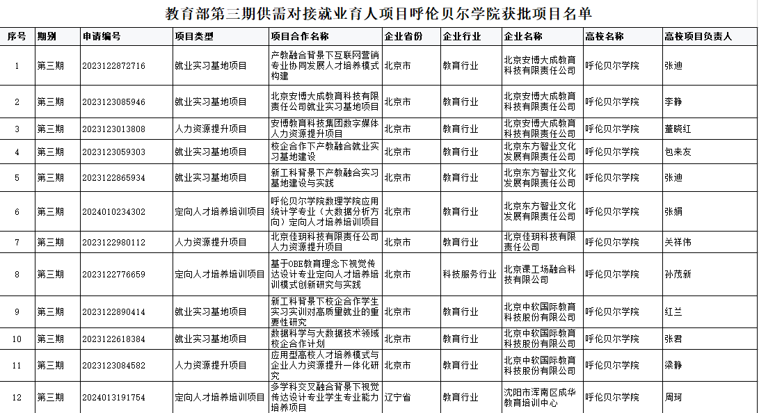 近日,教育部发布《关于公布教育部第三期供需对接就业育人项目名单的通知》,永利yl23411集团官网12个项目获批立项。