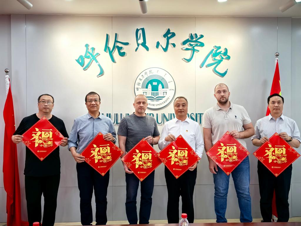 李跃武代表学校向别尔哥罗德国立工艺大学赠送了“中国语言与文化中心”牌匾、图书、书画、文房四宝、剪纸、对联等具有中国特色的文化礼品。这些礼品不仅象征着中国传统文化的精髓,也寄托了呼伦贝尔学院师生对中俄文化交流的美好祝愿。
