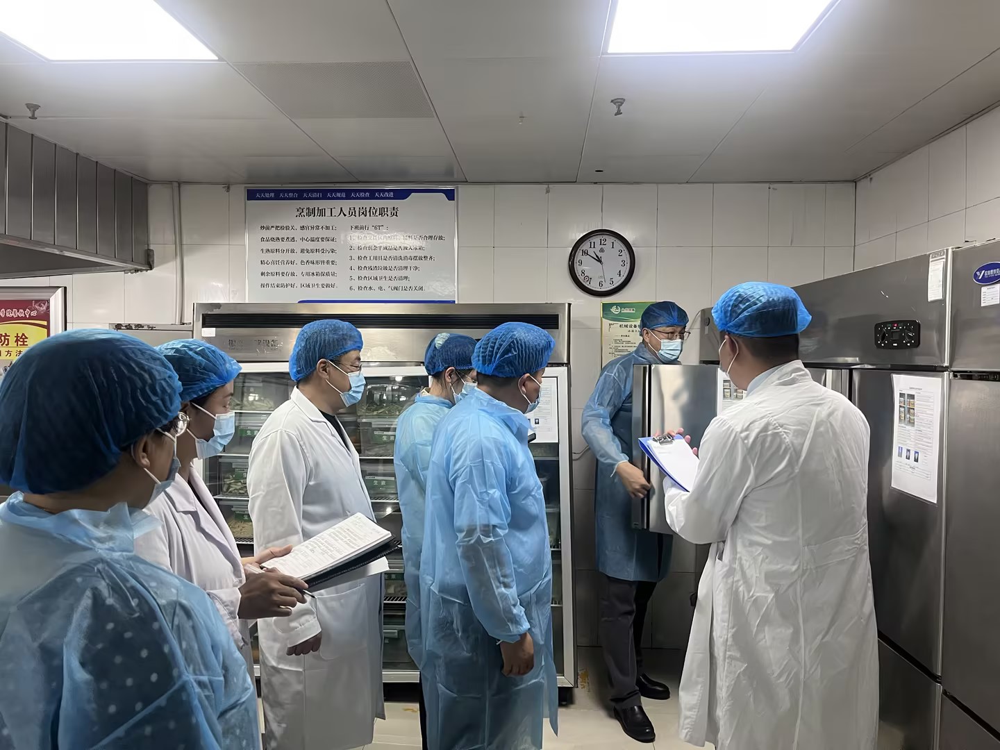工作组对学生食堂落实主体责任、加强日常监管、规范承包经营、节约教育宣传、沟通平台建设等五个方面开展现场专项检查指导。并深入食堂各操作间,检查食品添加剂记录等相关材料,对安全风险关键环节进行现场指导。