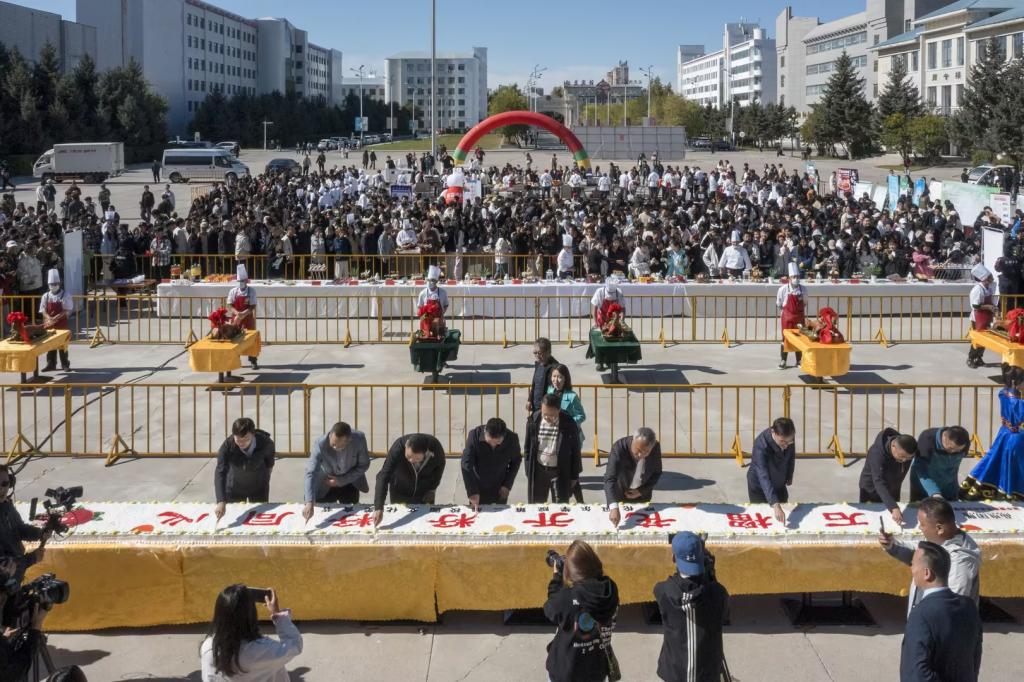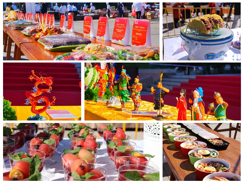 本次校园美食节准备了6只金黄酥脆烤全羊、自制的长达十米巨型蛋糕、精美的食雕、现场包饺子、冷餐小食;还设置了非物质文化遗产展区,呼伦贝尔特色奶制品、特色手工艺品等特色展区。