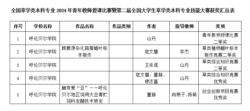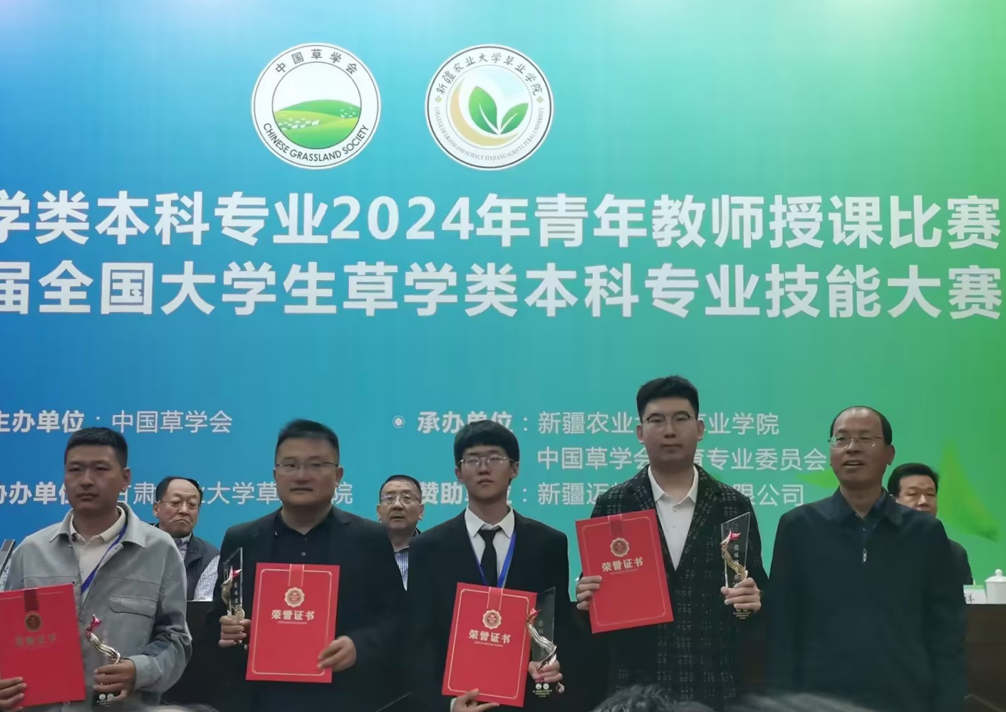 9月21日至22日,全国草学类本科专业2024年青年教师授课比赛暨第二届全国大学生草学类本科专业技能大赛在新疆维吾尔自治区乌鲁木齐市召开,永利yl23411集团官网农学院山丹老师荣获本次青年教师授课比赛二等奖;农学院山丹、李杰两位老师带领2021级草业科学班寇文慧、2022级草业科学班王依诺、董赫、穆志富等组成的代表队荣获大赛团体优秀奖;寇文慧同学的作品《辉腾原杂化苜蓿蜡叶标本制作》在草类植物蜡叶标本制作竞赛中荣获二等奖;王依诺同学在草类综合知识竞赛中荣获二等奖,寇文慧、董赫、穆志富获得优秀奖;王依诺同学在草类植物种子识别与净度分析竞赛中荣获优秀奖;董赫同学的《酶有爱“豆”——呼伦贝尔地区饲用大豆青贮饲料发酵技术研发》在创业创新项目竞赛中荣获优秀奖。