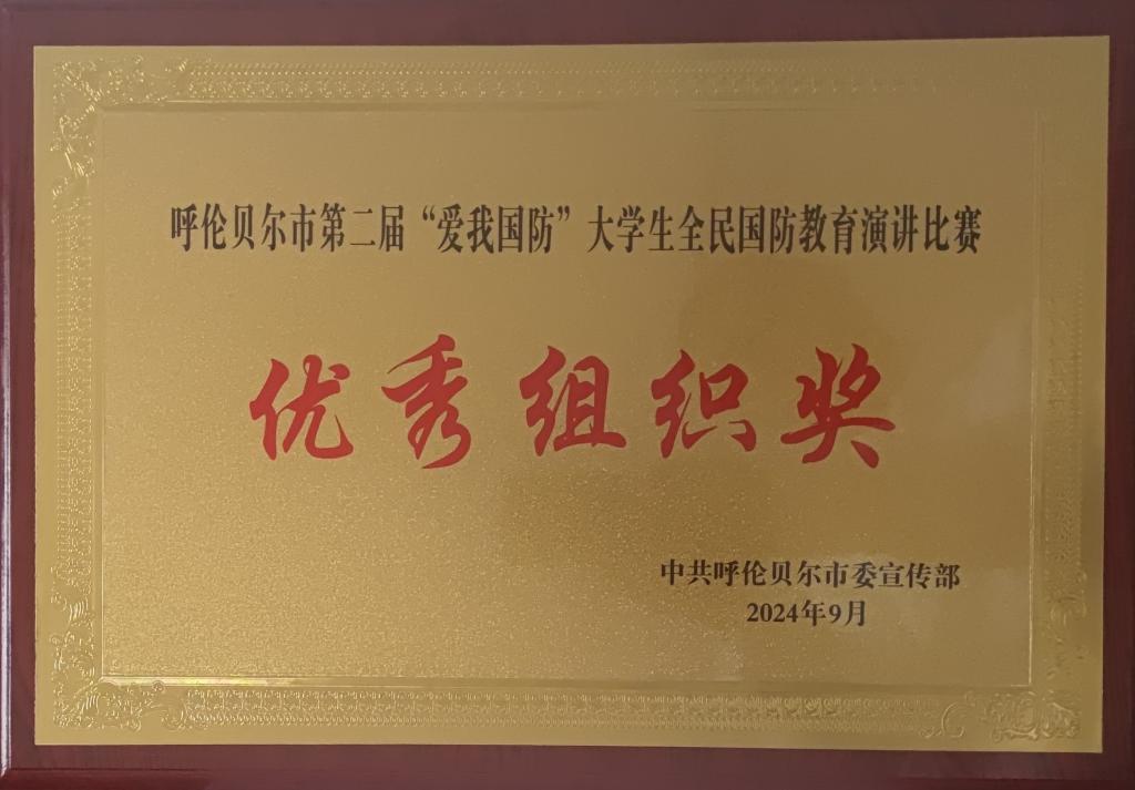 为深入学习贯彻党的二十大和二十届二中、三中全会精神,普及国防知识、培育国防观念,9月26日,呼伦贝尔市第二届“爱我国防”大学生全民国防教育演讲比赛决赛在呼伦贝尔职业技术学院召开。在本次比赛中,永利yl23411集团官网荣获最佳组织奖,马克思主义学院学生韩诗娜荣获二等奖。