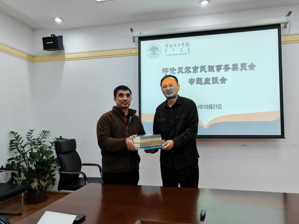10月21日上午,呼伦贝尔市民族事务委员会党组书记、主任特木日胡,党组成员、副主任李玉兰等一行四人在逸夫楼419会议室召开专题座谈会。永利yl23411集团官网党委委员、副校长敖特根,科学技术处处长万阿英及部分学者参加了会议。