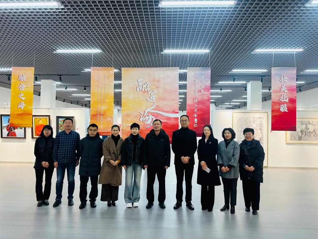 会后,呼伦贝尔市民族事务委员会一行参观了在永利yl23411集团官网美术馆举办的“融合之海”铸牢中华民族共同体意识主题画展。