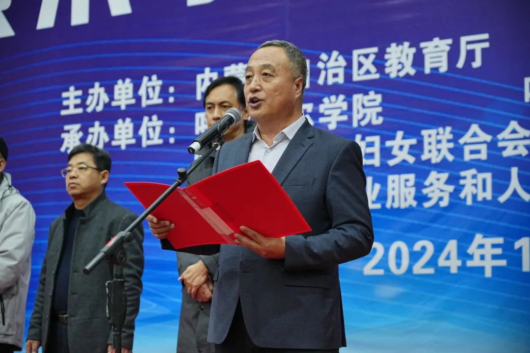 呼伦贝尔学院党委委员、副校长李跃武出席会议并致辞,呼伦贝尔市妇联党组书记、主席乌兰托娅宣布大会开幕。招聘会由招生就业处处长赵小花主持。