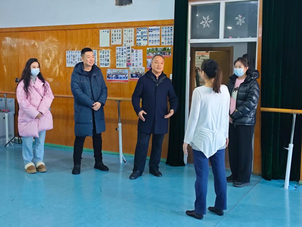 当日,李跃武还以“推门听课”的方式,深入2023级舞蹈表演班《呼伦贝尔精品剧目》的课堂。他认真观摩了音乐与舞蹈学院教师萨其尔的舞蹈教学,观察了学生们在课堂上的积极表现。课后,他表示,要提高学生的课堂参与度,在教学形式和方法上要大胆创新,全方位培养学生,既满足专业人才培养的需要,又要适应社会对人才的需要,确保学院审核评估工作和师范专业认证工作顺利进行。