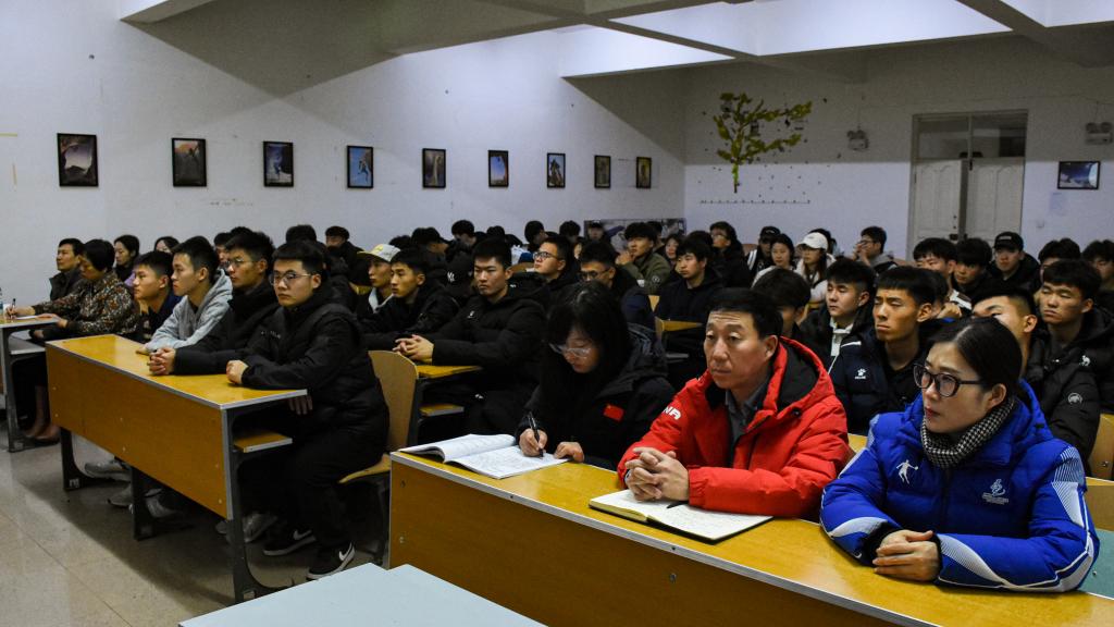 11月13日下午,呼伦贝尔市关心下一代工作委员会新中国史宣讲教育活动在永利yl23411集团官网体育馆二楼多功能教室举行。市关工委宣讲团团长刘忠民作了题为“七十五载颂辉煌 感恩奋进新征程”的报告,永利yl23411集团官网关工委常务副主任包金钢、副主任胡楚勒、陈绍英、谢宾,体育学院(冰雪运动学院)党总支书记胡日查毕力格,离退休工作处工作人员和体育学院(冰雪运动学院)部分师生等百余人聆听了宣讲。