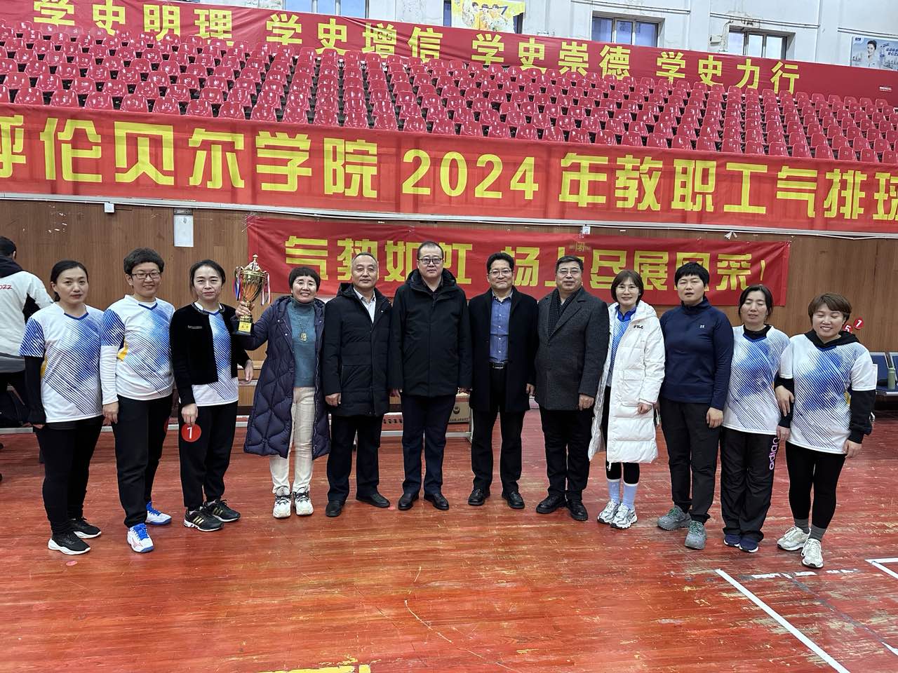 11月17日,呼伦贝尔学院2024年教职工气排球比赛圆满落下帷幕。校党委副书记张宏天,校党委委员、副校长李跃武,工会主席吕根,体育学院(冰雪运动学院)党总支书记胡日查毕力格及各基层分工会主席出席颁奖仪式,仪式由工会副主席夏颖杰主持。