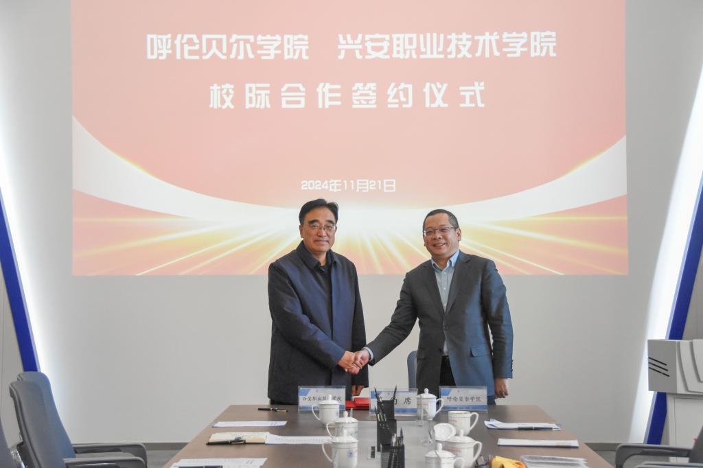 随后双方举行了座谈及签约仪式。座谈会上,双方就合作意向、合作方式、合作内容等进行了深入交流和探讨,并就继续教育、联合培养学生、产教深度融合等达成了多项共识。永利yl23411集团官网党委副书记、校长张玉柱,兴安职业技术学院党委副书记、院长范勇毅分别代表双方签署了合作协议,标志着两校的合作进入了新的高质量发展阶段。