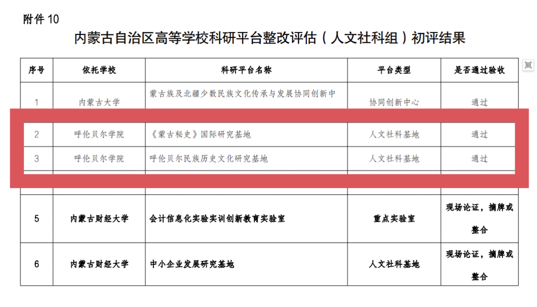 近日,内蒙古自治区教育厅公布了《2024年度内蒙古自治区高等学校科研平台评估初评结果》(内教科外函﹝2024﹞302号),永利yl23411集团官网呼伦贝尔历史文化遗产与中华民族交往交流交融研究基地通过培育建设评估;矿产资源安全开采与综合利用工程研究中心、《蒙古秘史》国际研究基地、呼伦贝尔民族历史文化研究基地等三个科研平台通过整改评估。