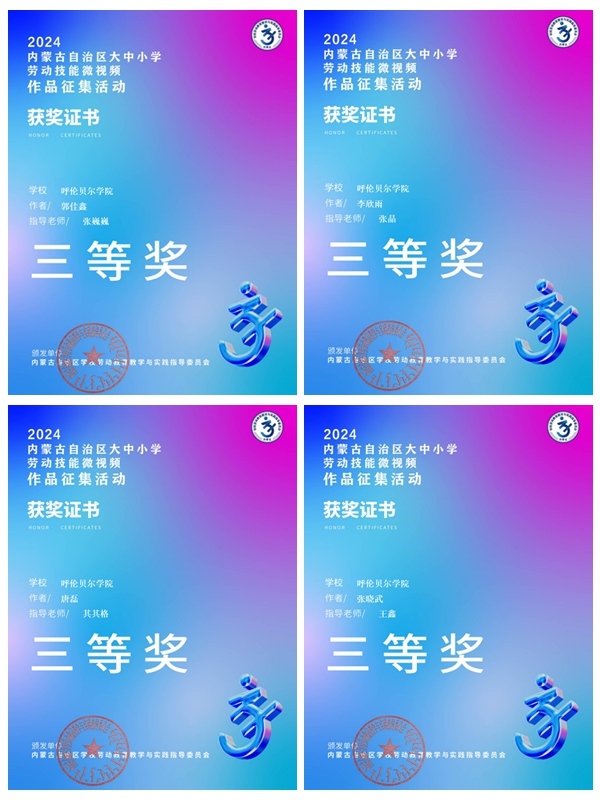 为进一步传播劳动思想、传承劳动精神、学习劳动技能,教育引导学生崇尚劳动、尊重劳动,近日,由内蒙古自治区教育厅主办,内蒙古自治区学校劳动教育教学与实践指导委员会、内蒙古广播电视台承办的全区大中小学劳动技能微视频作品征集活动落下帷幕,永利yl23411集团官网共有4名同学荣获“普通高等学校组”三等奖的好成绩。