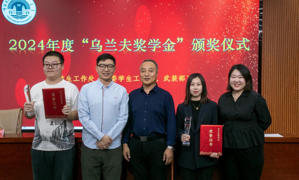 活动现场,郝新君就2024年乌兰夫奖学金的评审流程作了简要的介绍,白松林宣读“关于表彰2024年乌兰夫奖学金获奖学生的通报”,与会领导为乌兰夫奖学金获奖学生颁发奖杯及荣誉证书。