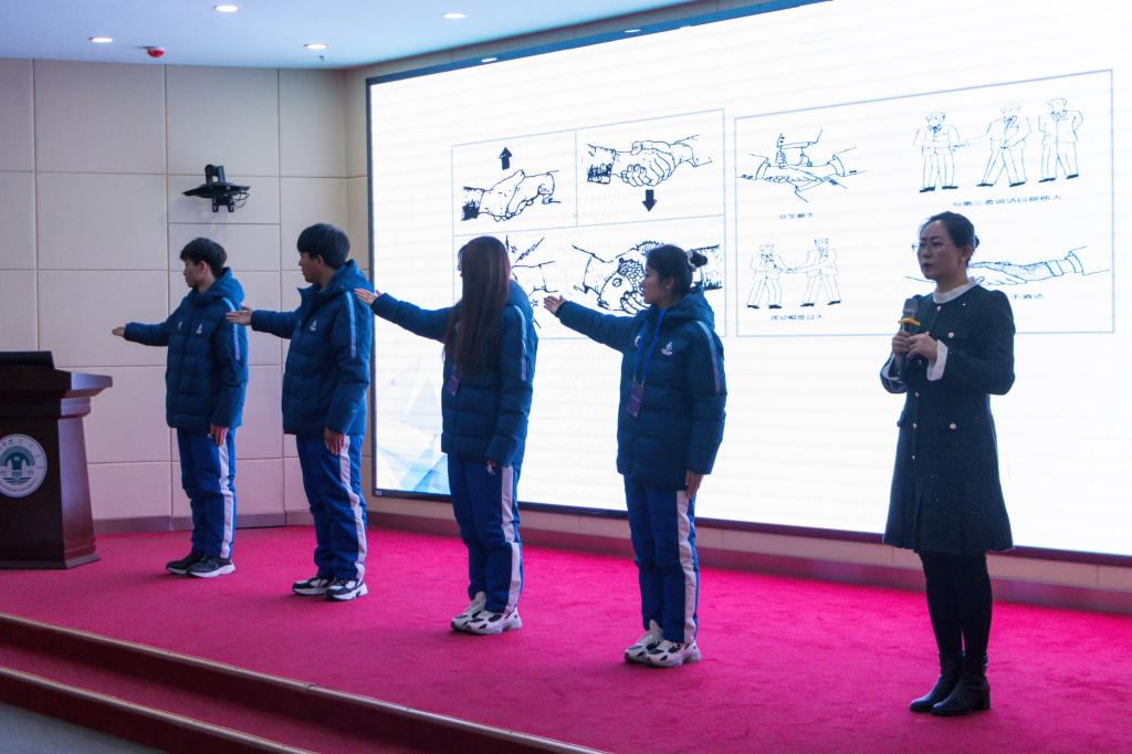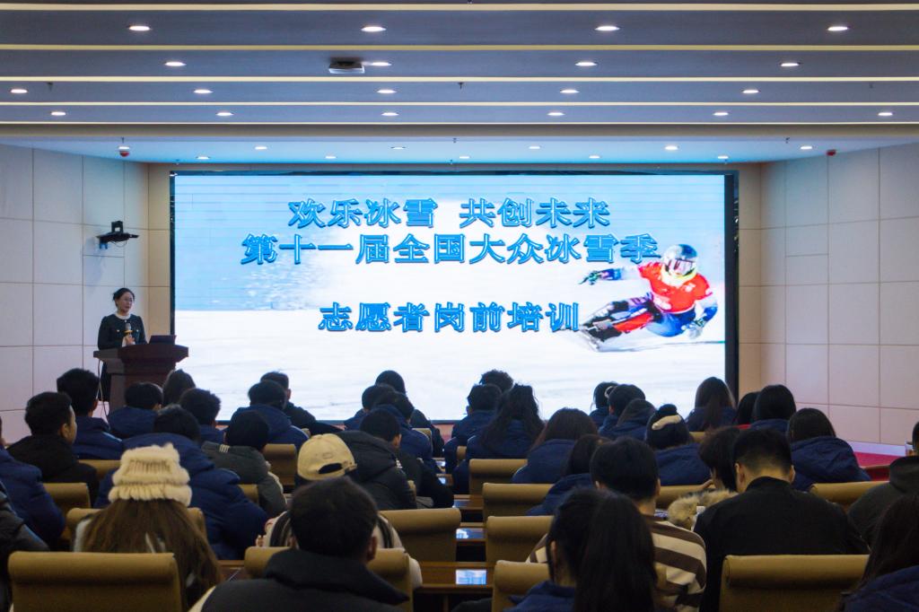 培训会上,旅游地理与历史文化学院教师艾凤巍针对志愿者仪容礼仪、服务礼仪等形体方面,开展题为“欢乐冰雪 共创未来”的第十一届全国大众冰雪季启动仪式志愿者岗前培训。