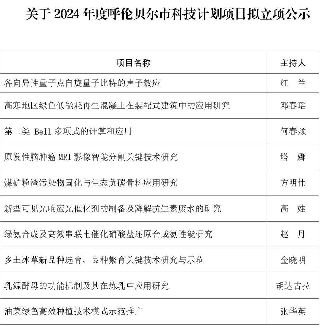 近日,呼伦贝尔市科学技术局发布《关于2024年度呼伦贝尔市科技计划项目拟立项公示》,永利yl23411集团官网10项课题获批立项,获批资助经费170万元。此次永利yl23411集团官网获批立项数和经费数实现双突破,创历年新高。