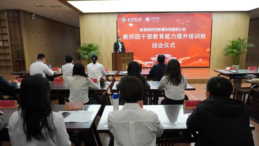结业仪式上,王晓芳代表派出学校进行发言,对曲阜师范大学提供的精心课程安排与周到细致的服务表示感谢。她表示全体参训团干部在培训中展现出了极高的学习热情和专业素养,圆满完成了培训任务,学习内容涵盖专家讲座、实地考察、交流研讨等内容,收获满满。期待老师们将所学带回,应用于教学实践,推动呼伦贝尔学院教育能力和质量提升。未来,期待在教育部师范教育协同提质计划中,两所学校携手共进,创新共青团联合活动形式,凝聚青年力量,通过全方位合作,挖掘更多潜力,为教育事业的高质量发展添砖加瓦。