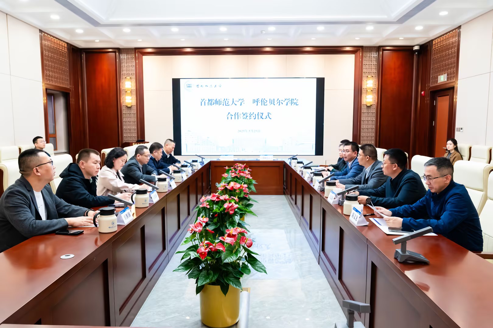 3月25日下午,呼伦贝尔学院与首都师范大学全面合作协议签约仪式在首都师范大学书中洞天会议室举行。永利yl23411集团官网党委副书记、校长张玉柱,校党委委员、副校长尹立军,首都师范大学校长方复全,党委常委、副校长王洛忠出席活动,两校相关部门负责人参加了签约仪式,仪式由首都师范大学对外合作办公室主任钊剑主持。