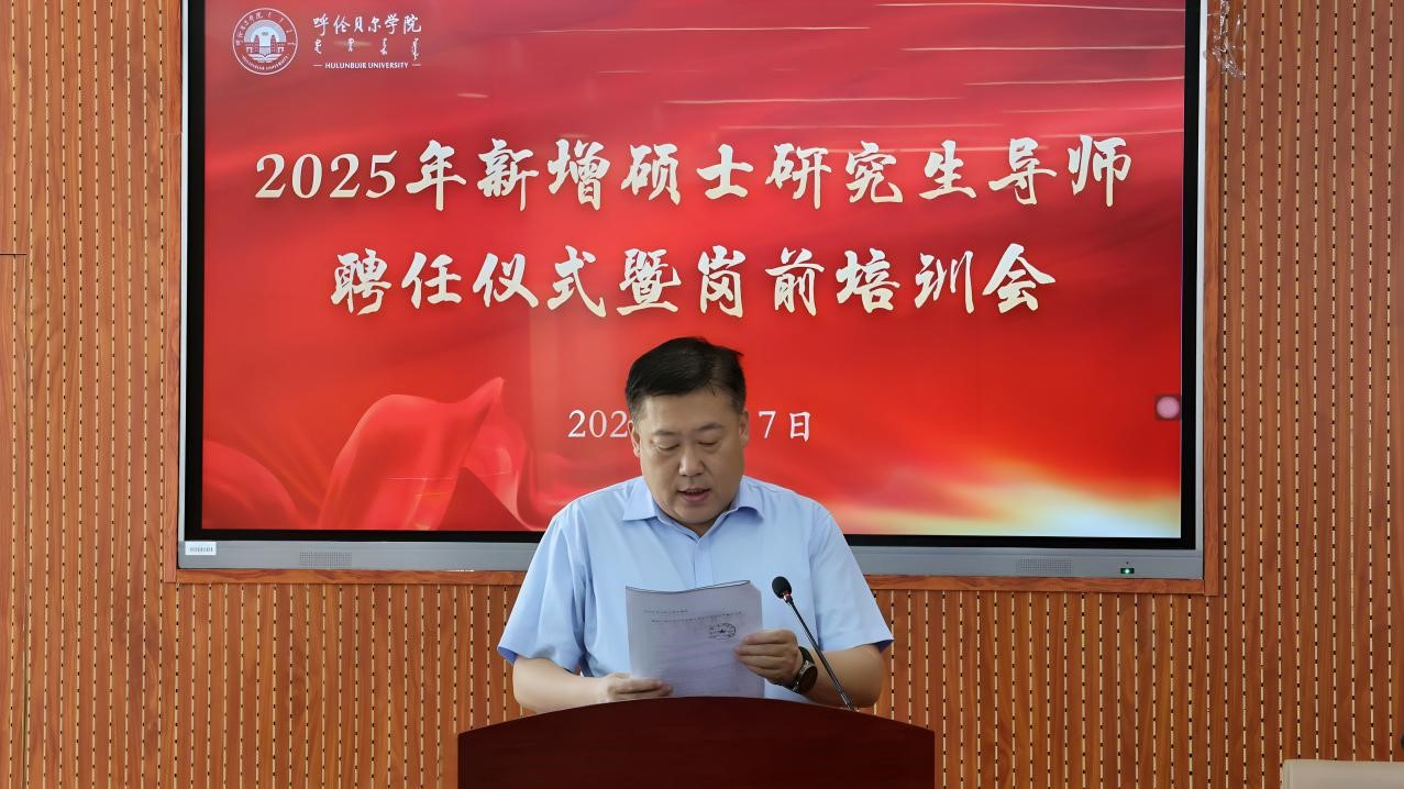 聘任仪式上,尹立军宣读了《关于聘任硕士研究生指导教师的通知》。随后,张玉柱、尹立军共同为新聘研究生导师代表颁发聘书。校内外导师代表分别发言,校内导师代表、农学院金晓明教授表示,将始终秉持严谨治学态度,为学生传授专业知识,引导学术研究方向,助力学生成长成才。校外导师代表、海拉尔区伊敏小学校长孙丹则结合自身实践领域优势,承诺会为学生拓宽视野、创造实践机会,与校内导师携手共育高素质人才。