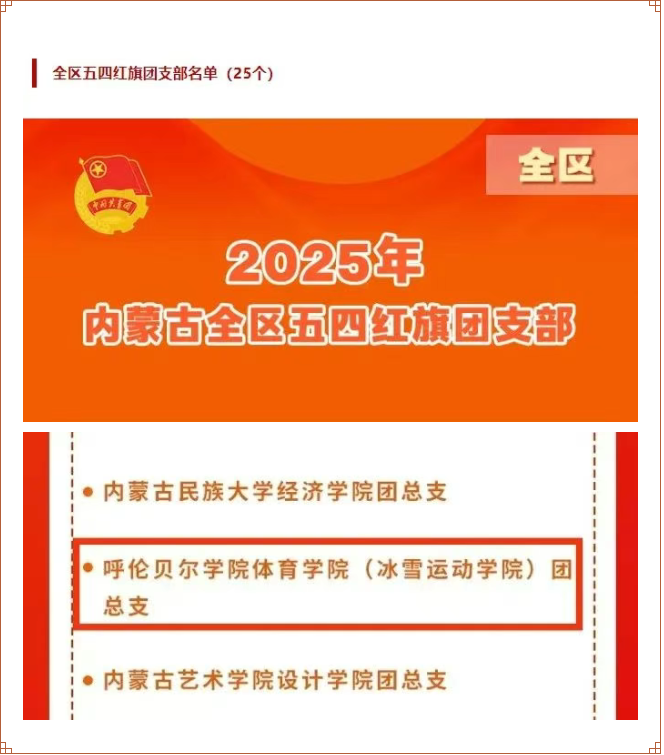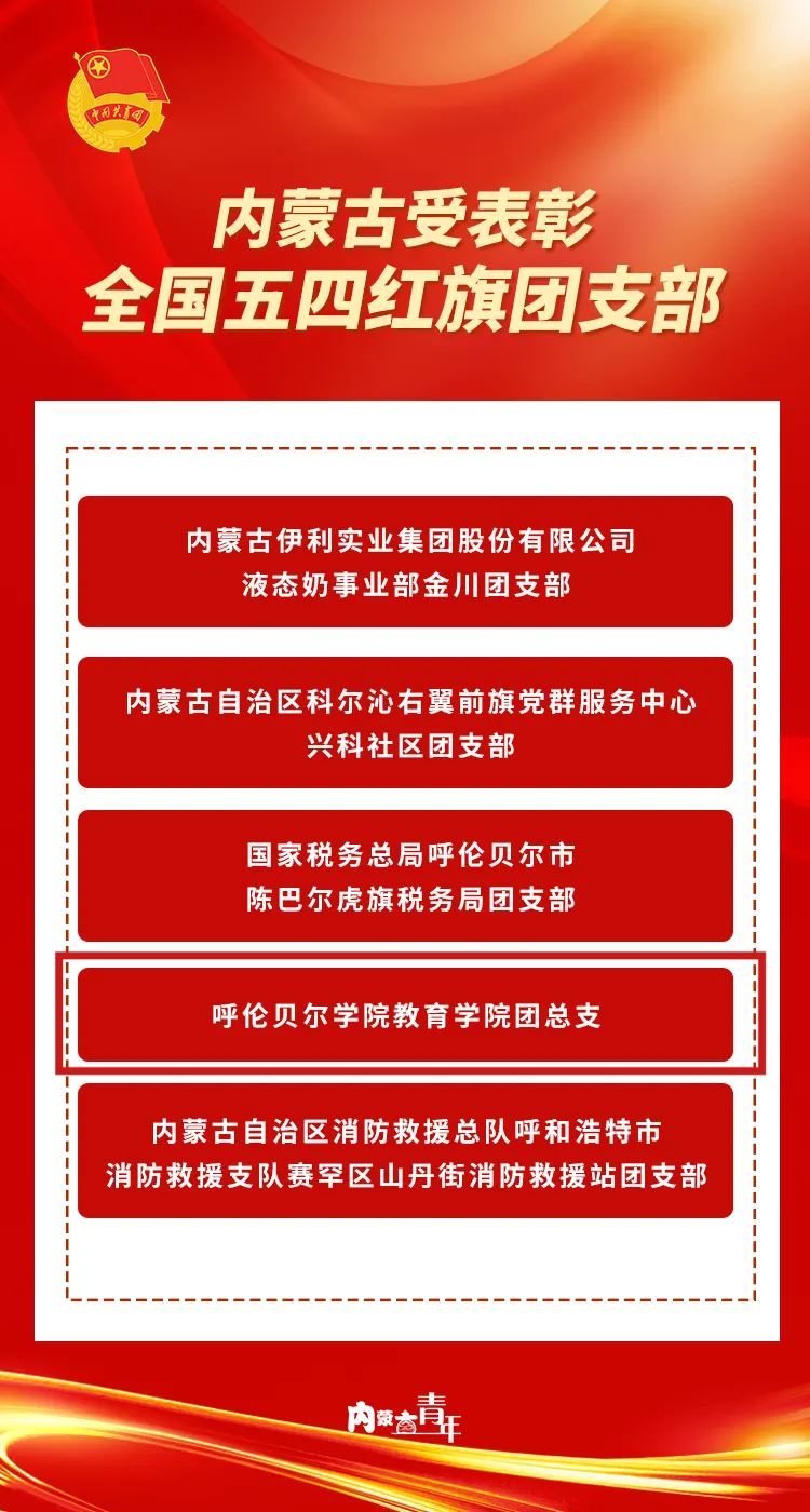 在五四青年节期间,共青团中央、共青团内蒙古自治区委员会公布了全国、全区“两红两优”评选结果,永利yl23411集团官网教育学院团总支获评“全国五四红旗团支部(团总支)”荣誉称号;体育学院(冰雪运动学院)团总支获评内蒙古自治区“全区五四红旗团支部(团总支)”荣誉称号;数理学院2022级数学与应用数学专业学生林紫冉获评内蒙古自治区“全区优秀共青团员”荣誉称号。