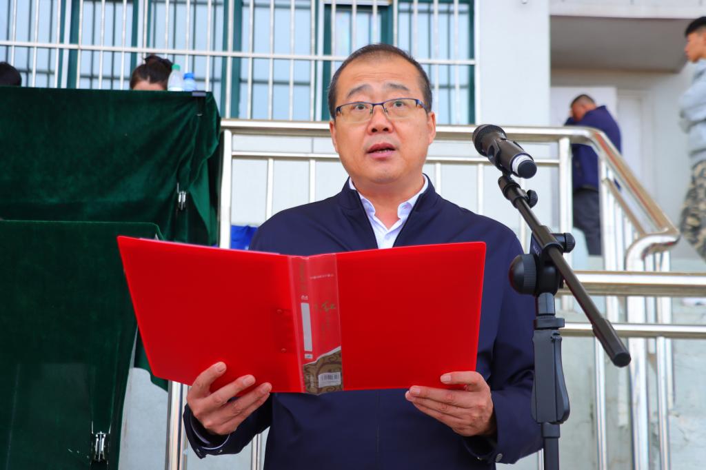 校党委副书记张宏天代表学校,向圆满完成军训任务的全体2025级同学表示祝贺,向全体承训教官、全程陪伴老师表达感谢与敬意。他希望新生牢记:未来的人生,有风有雨是常态,风雨兼程是状态,风雨无阻是心态;山有顶峰,湖有彼岸,人生漫漫,请相信万物皆有回转。当我们觉得余味苦涩时,请相信一切皆有回甘。并向新生提出三点期望,希望同学们以“坚持”为笔,书写勤学笃行的青春答卷;以“团结”为桥,凝聚互助共进的集体力量;以“自律”为尺,筑牢稳步前行的人生根基。