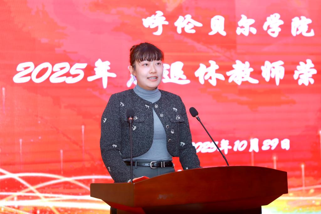 旅游地理与历史文化学院教师王艺淳代表青年教师郑重承诺,将接好前辈们的“接力棒”,赓续“艰苦奋斗、求是创新”的呼院精神,坚守“明德致和、笃学尚行”的校训,扎根北疆,服务地方,让教育火炬代代相传。