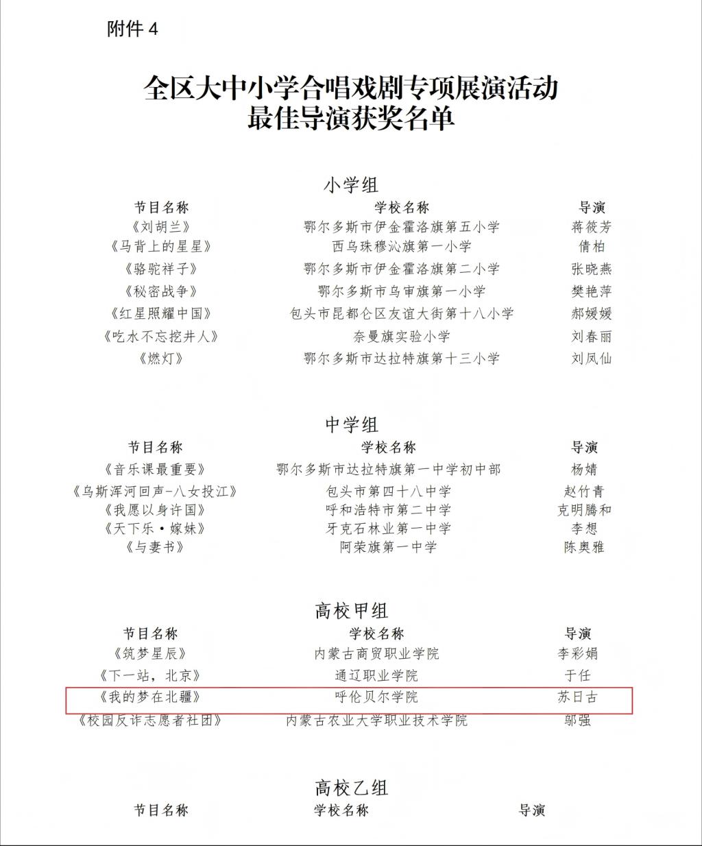 其中,《我的梦在北疆》作品团队于10月30日至11月2日期间,受邀赴鄂尔多斯市参加了现场展演,以生动的舞台呈现赢得了评委与现场观众的一致好评,充分彰显了永利yl23411集团官网艺术教育的扎实成效。