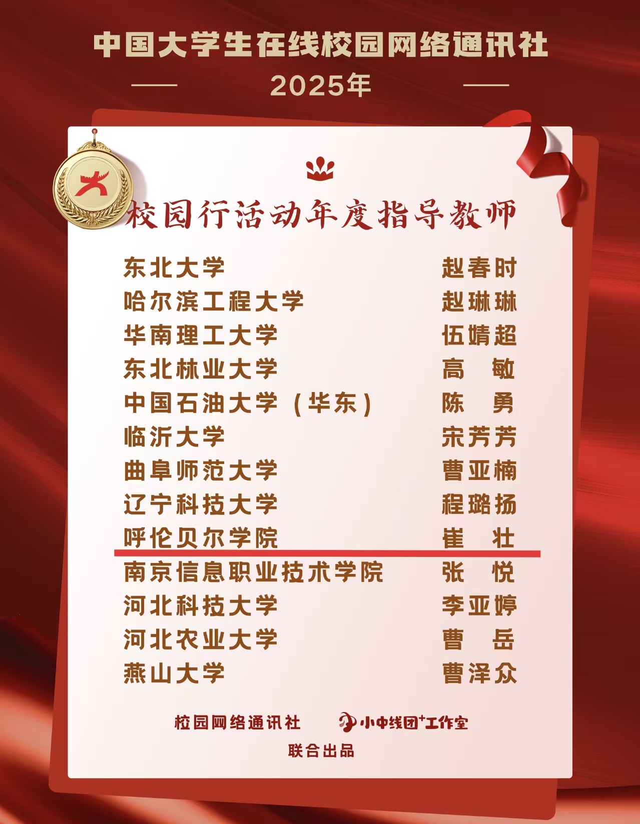 2025年,呼伦贝尔学院校园网络通讯站累计发布内容240余条,校园号指数稳定在500+,5篇文章在中国大学生在线首页展示。长期以来,学校高度重视与“中国大学生在线”的合作共建,围绕“考研”“迎新季”“毕业季”等热点话题,策划推出了一系列有深度、有温度的原创作品。呼伦贝尔学院校网通站始终锚定立德树人根本任务,将网络育人工作置于思政建设的突出位置,以校园网络文化建设为重要抓手,持续丰富优质内容供给、创新传播载体形式、建强专业化工作队伍,着力构建起正能量充沛、主旋律高昂的网络育人新格局。