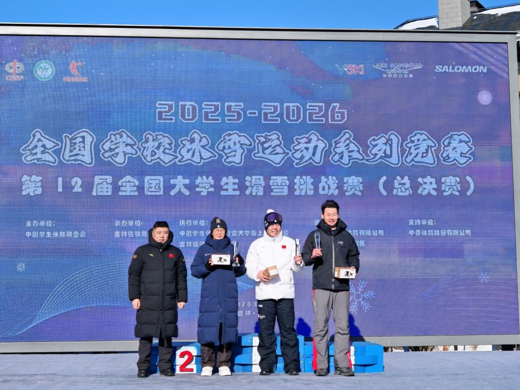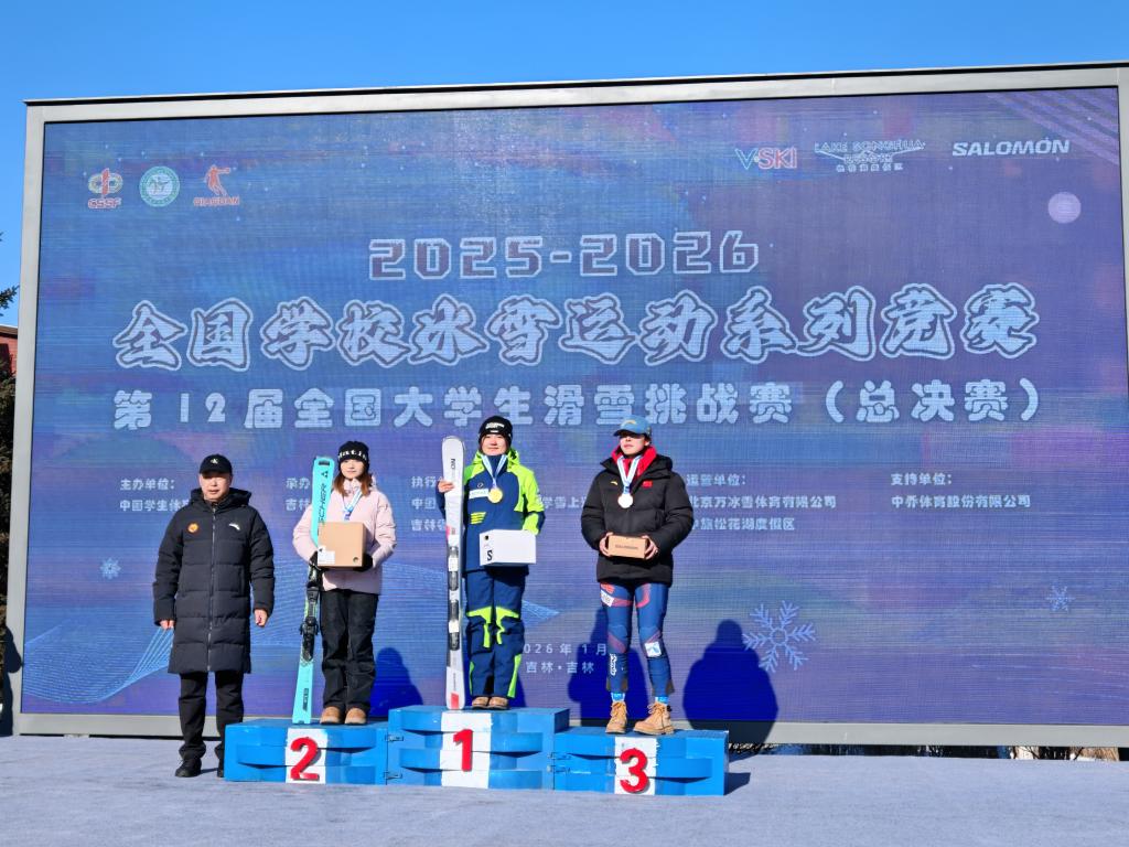 2026年1月17日至20日,第十二届全国大学生滑雪挑战赛(总决赛)在吉林市松花湖滑雪场燃情开赛。作为全国大学生滑雪领域的顶级赛事,本次大赛由中国学生体育联合会主办、吉林省教育厅承办,清华大学、北京大学、北京体育大学等全国60所高校的290名学子集结竞技,在冰天雪地中上演速度与激情的巅峰对决。永利yl23411集团官网高山滑雪队在体育学院(冰雪运动学院)院长李晓峰的带领下,在为期三天的赛事中斩获高山大回转团体、女子高山大回转个人两块金牌,用实力书写了边疆高校冰雪运动的精彩篇章。
