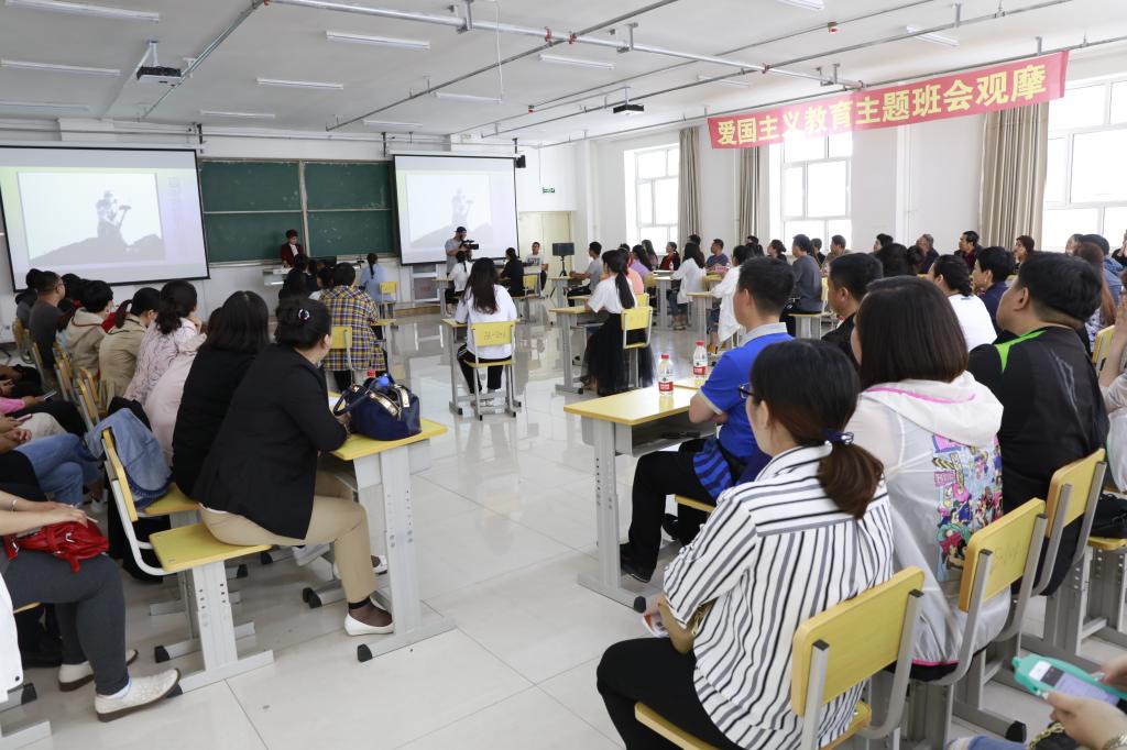 为贯彻落实习近平新时代中国特色社会主义思想和党的十九大精神,结合建国70周年,发挥主题班会思想引领作用,同时深耕精培辅导员、班主任队伍建设成果,在教育实践中实现与学生需求的精准对接,更好地激发学生爱国之情和报国之志并落实到实际行动上。6月13日,学生处举办“爱祖国 担大任 做新人”爱国主义教育主题班会观摩活动,校党委委员、副校长乌云达来、学生处处长胡秋莉、副处长毛永强以及各学院党总支书记、副书记、学工办主任、辅导员参加了观摩活动。