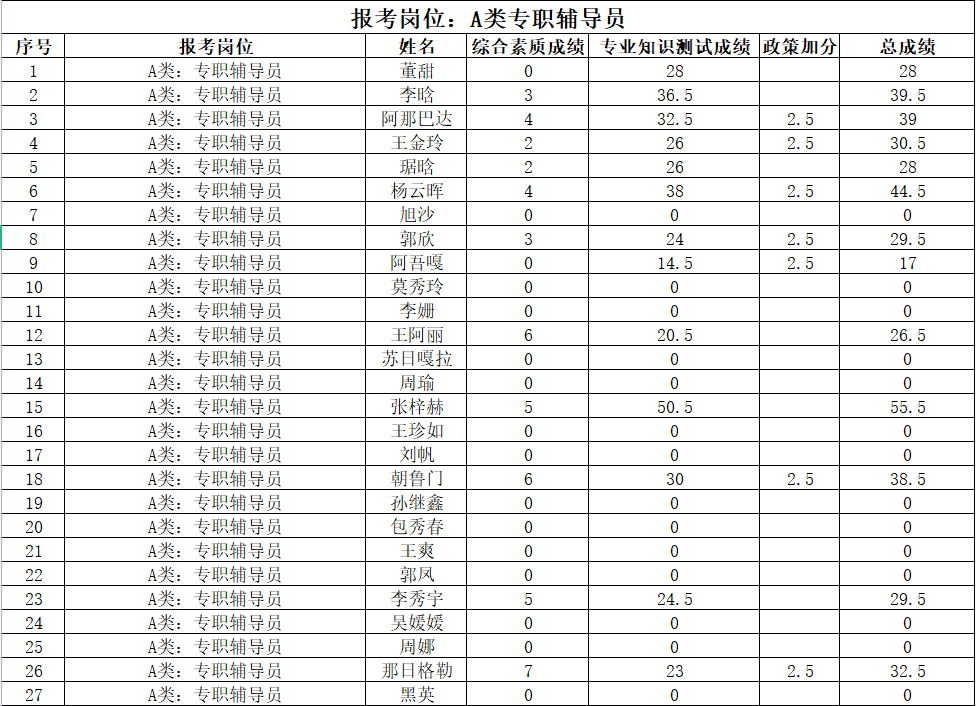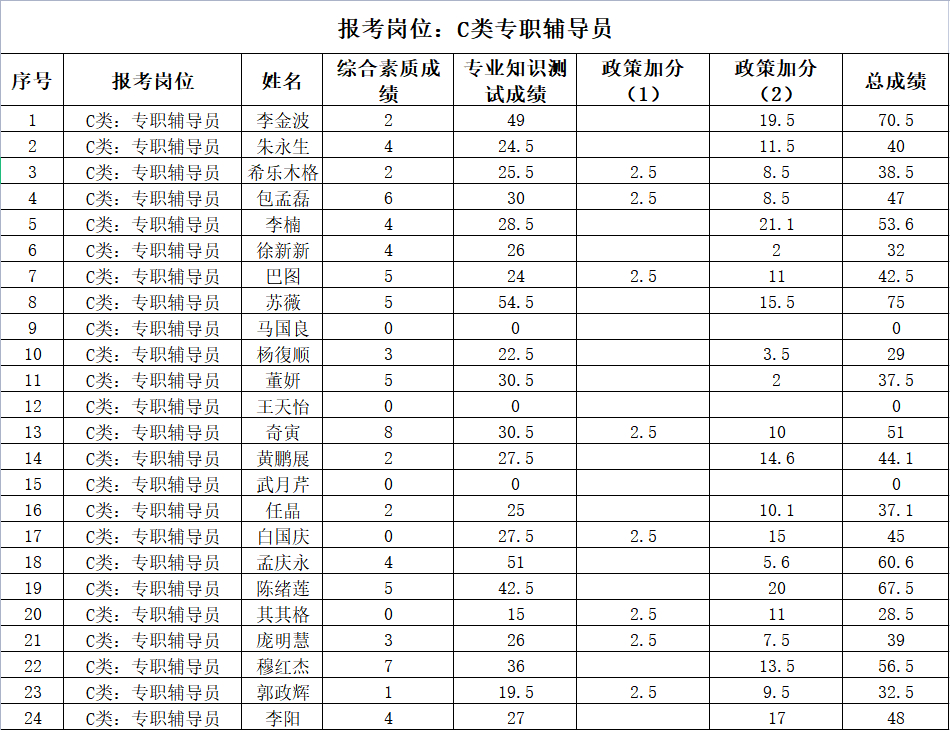 呼伦贝尔学院2021年公开招聘工作人员和编制外辅导员笔试成绩公告