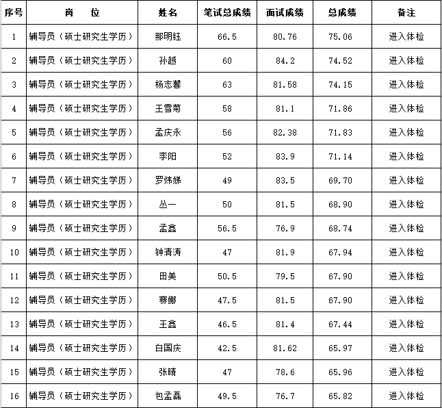 关于公布呼伦贝尔学院2022年公开招聘编制外工作人员总成绩及体检相关事宜的通知