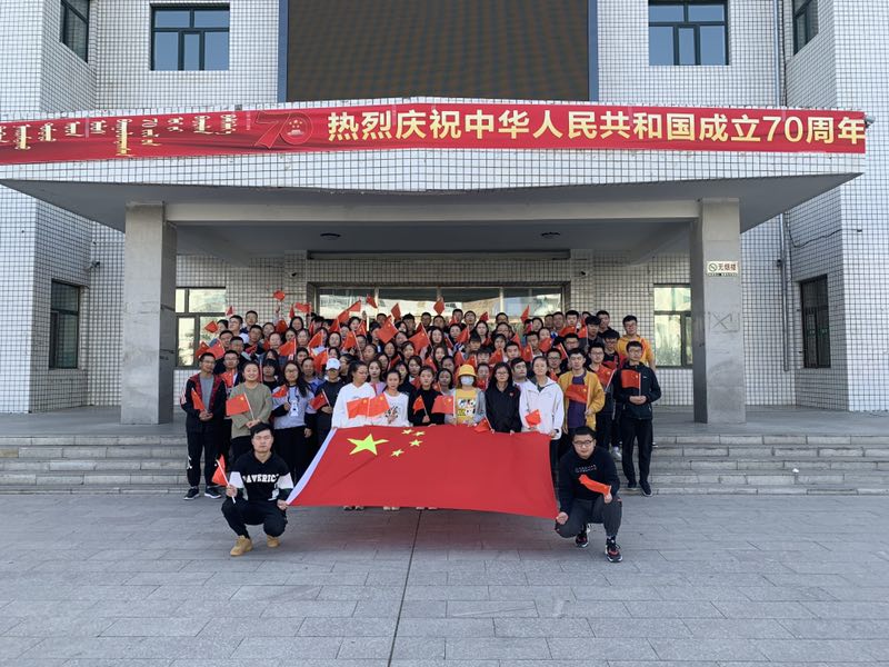 观看结束后,同学们一同在笃学楼下与国旗合影,为祖国送上自己的一份祝福。