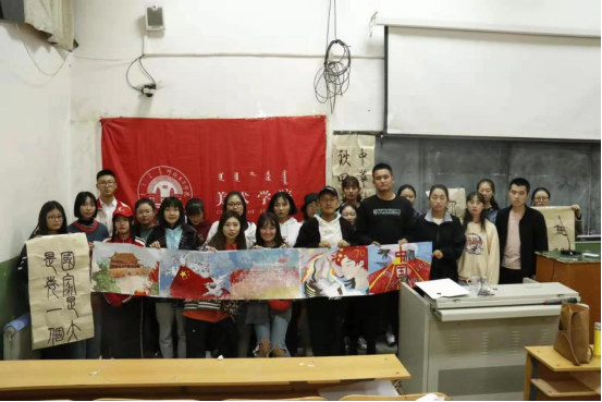 10月7日上午,美术学院在经管100教室举办“凝聚中国梦,挥洒爱国情”涂鸦彩绘大赛。2019级6个班的新同学参与其中,一起彩画绘制,挥洒自己的创意。