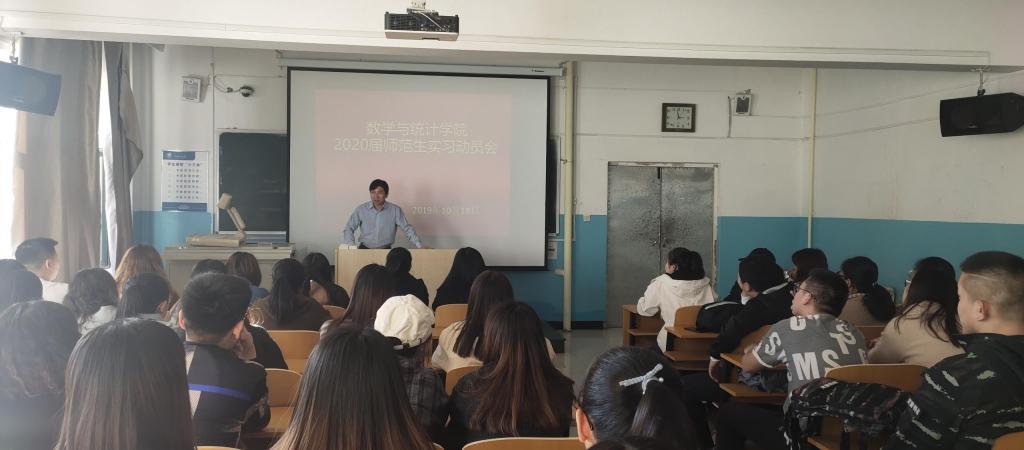 10月18日上午,数学与统计学院在笃学楼501召开2020届师范专业实习动员会,2016级数学与应用数学专业、2017级数学教育专业全体同学参加会议,会议由数学与统计学院副院长包来友主持。