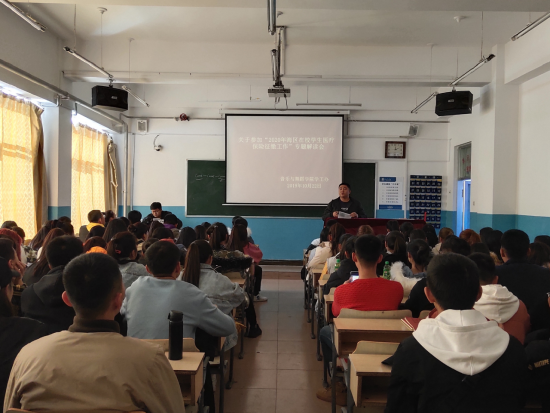根据呼伦贝尔市海拉尔区医疗保险中心《关于开展2020年海区在校学生参加城乡居民基本医疗保险征缴工作的通知》文件要求,10月22日中午,音乐与舞蹈学院在艺术楼601教室进行相关文件专题解读会,会议由2019级辅导员包孟磊老师主持讲解。