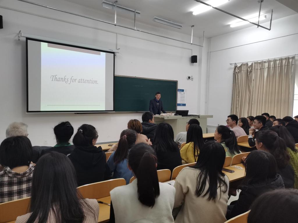 Galynis Kirill Igorevich博士向大家介绍了后贝加尔地区经济发展的关键产业,以及制约该地区旅游业发展的因素等内容。又为同学们介绍了赤塔市的旅游业发展,描述了当地民俗以及一些传统节日文化。丰富的讲座内容和活泼的讲座方式让学生体验到英式课堂的独特魅力,赢得了阵阵热烈的掌声,使大家深入理解英语学习过程带来的乐趣,并积极配合老师进行互动,在提高英语学习兴趣的同时,也增强了学习英语的自信心。
