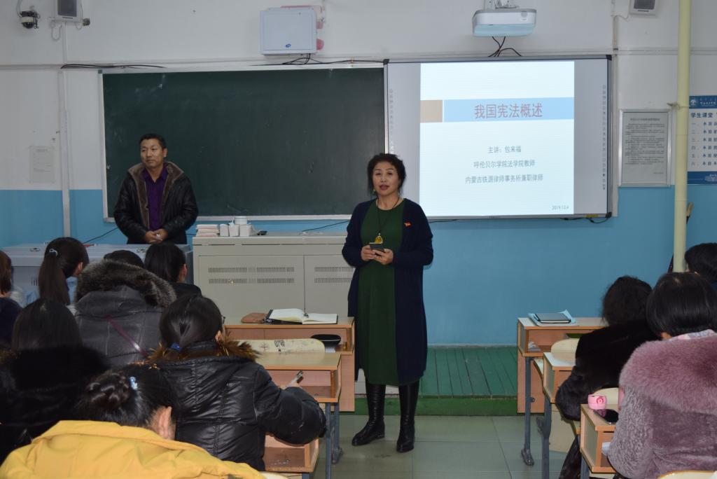 包老师先介绍了我国宪法的起草经过和历次修改的时间与背景,然后从宪法的内涵、我国的国体与政体、我国的选举制度和政党制度、我国的基本经济制度、公民的权利和义务等7个方面,对宪法做了解读。包老师结合呼伦贝尔地区的真实案例阐释了宪法作为根本大法,是和我们的工作生活息息相关的。