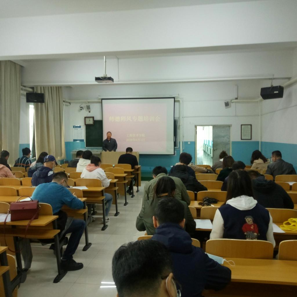 为进一步贯彻落实“立德树人”根本任务,加强师德师风建设,按照学校通知精神,6月3日下午,工程技术学院组织召开以“厚植爱国情怀,涵育高尚师德,加强新时代教师队伍建设”为主题的师德师风专题培训会,班子成员及全体教职工参加。