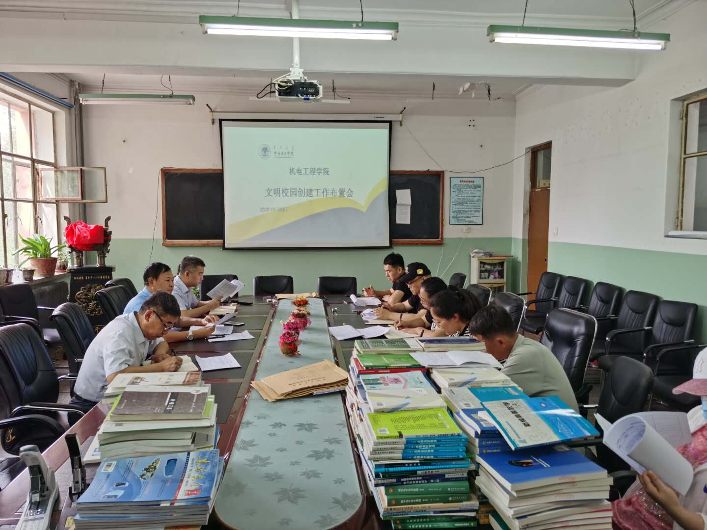 6月30日上午,机电工程学院在知行楼213室召开文明校园创建工作布置会。在校学院班子成员、各支部书记及相关科室负责人参加了会议。会议由王旭书记主持。